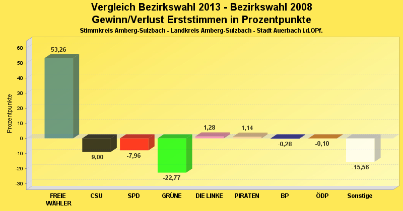 | Partei | Erststimmen 2013 | Prozent 2013 | Erststimmen 2008 | Prozent 2008 | |