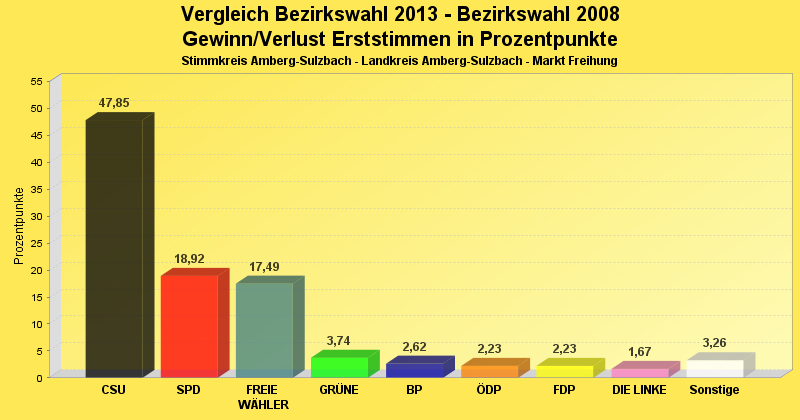 | Partei | Erststimmen 2013 | Prozent 2013 | Erststimmen 2008 | Prozent 2008 | |