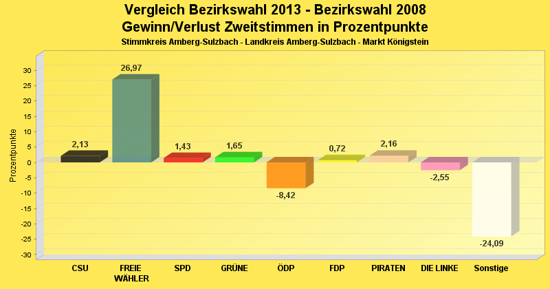 | Partei | Zweitstimmen 2013 | Prozent 2013 | Zweitstimmen 2008 | Prozent 2008 | |