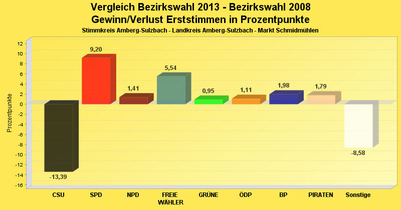 | Partei | Erststimmen 2013 | Prozent 2013 | Erststimmen 2008 | Prozent 2008 | |