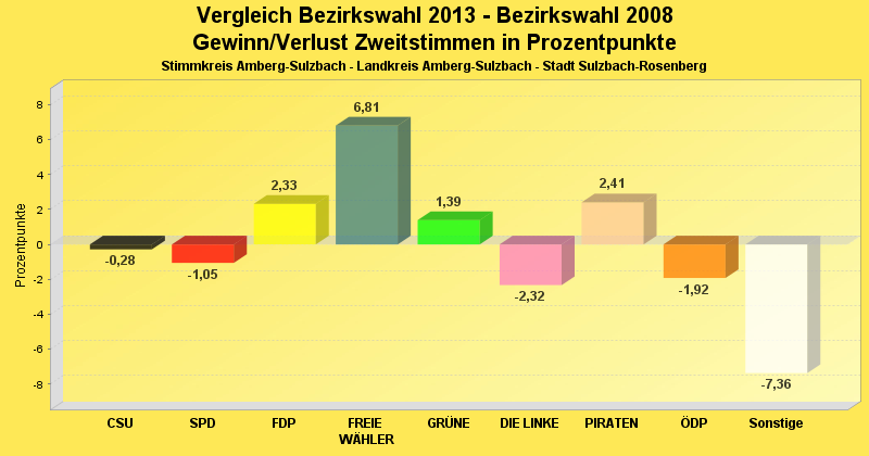 | Partei | Zweitstimmen 2013 | Prozent 2013 | Zweitstimmen 2008 | Prozent 2008 | |