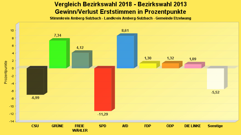 | Partei | Erststimmen 2018 | Prozent 2018 | Erststimmen 2013 | Prozent 2013 | |