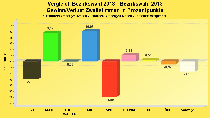 | Partei | Zweitstimmen 2018 | Prozent 2018 | Zweitstimmen 2013 | Prozent 2013 | |
