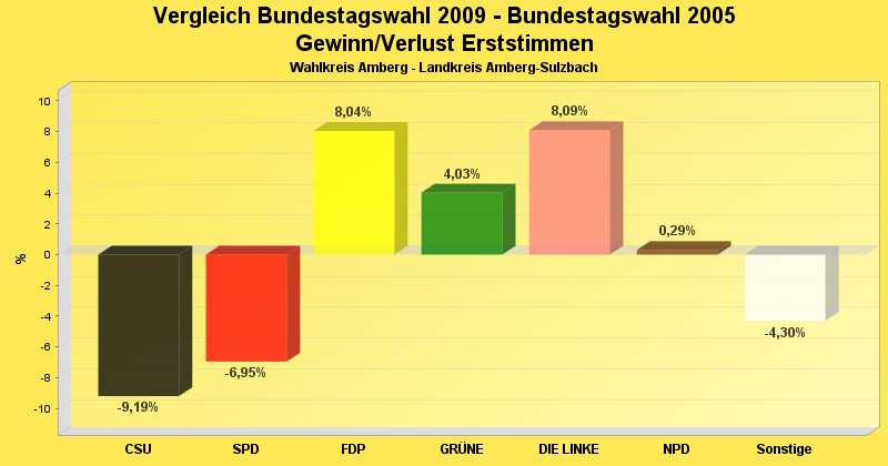 | Partei | Erststimmen 2009 | Prozent 2009 | Erststimmen 2005 | Prozent 2005 | |