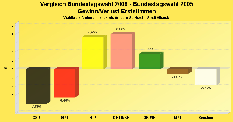 | Partei | Erststimmen 2009 | Prozent 2009 | Erststimmen 2005 | Prozent 2005 | |