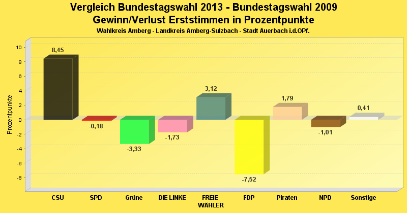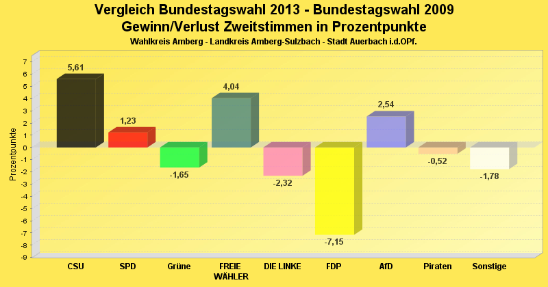 | Partei | Zweitstimmen 2013 | Prozent 2013 | Zweitstimmen 2009 | Prozent 2009 | |
