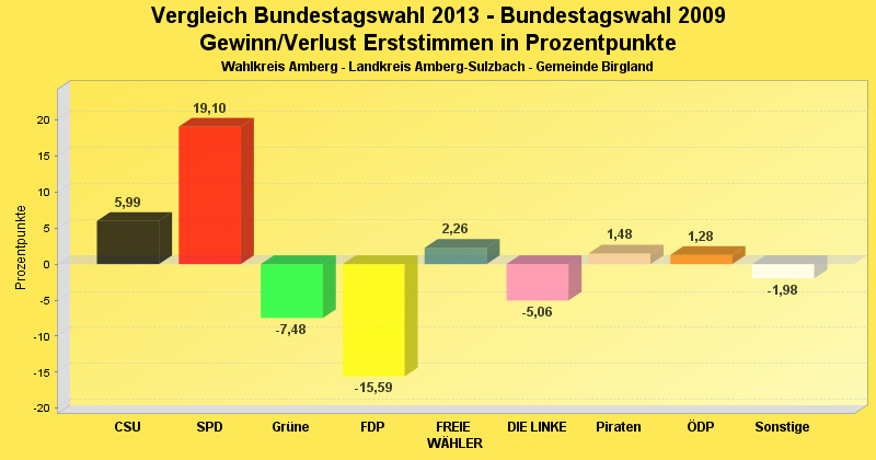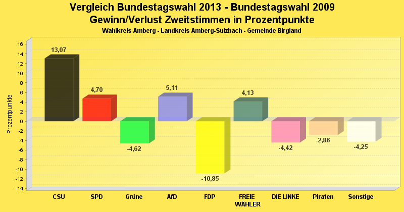 | Partei | Zweitstimmen 2013 | Prozent 2013 | Zweitstimmen 2009 | Prozent 2009 | |