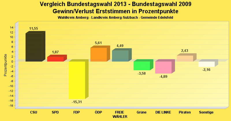 | Partei | Zweitstimmen 2013 | Prozent 2013 | Zweitstimmen 2009 | Prozent 2009 | |