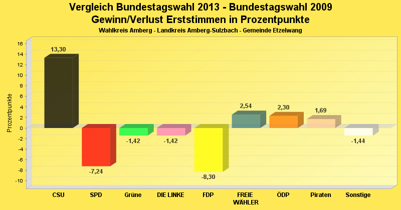 | Partei | Zweitstimmen 2013 | Prozent 2013 | Zweitstimmen 2009 | Prozent 2009 | |