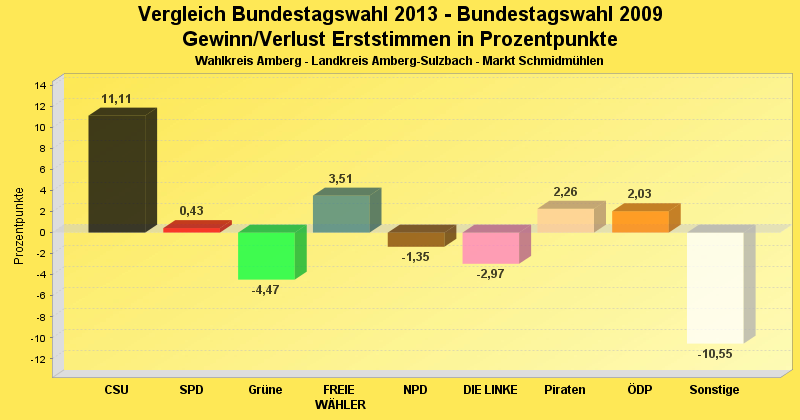 | Partei | Zweitstimmen 2013 | Prozent 2013 | Zweitstimmen 2009 | Prozent 2009 | |