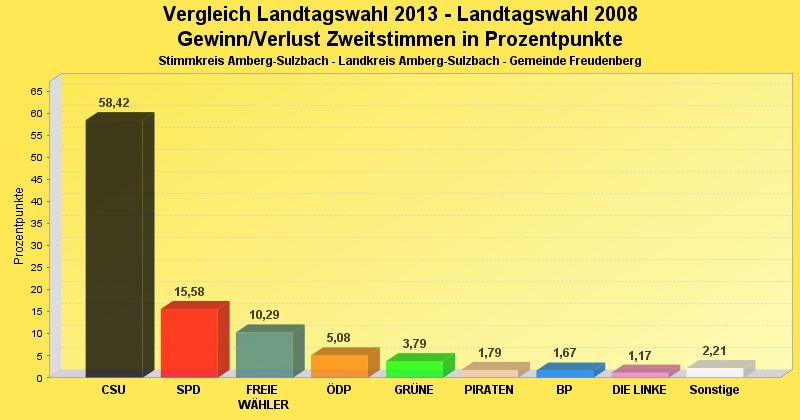 | Partei | Zweitstimmen 2013 | Prozent 2013 | Zweitstimmen 2008 | Prozent 2008 | |