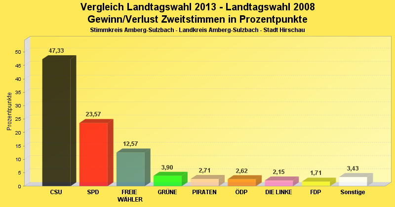 | Partei | Zweitstimmen 2013 | Prozent 2013 | Zweitstimmen 2008 | Prozent 2008 | |