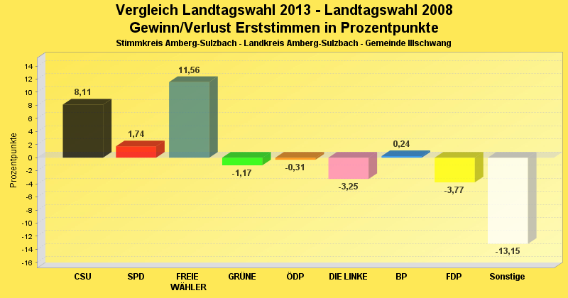 | Partei | Zweitstimmen 2013 | Prozent 2013 | Zweitstimmen 2008 | Prozent 2008 | |