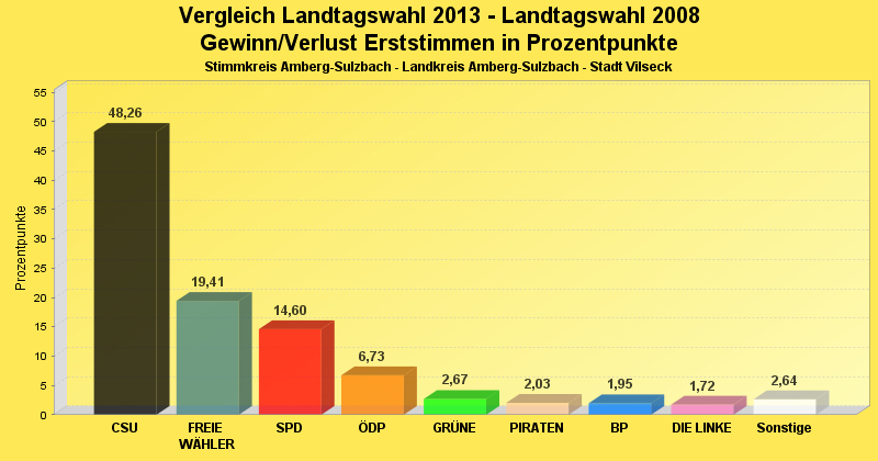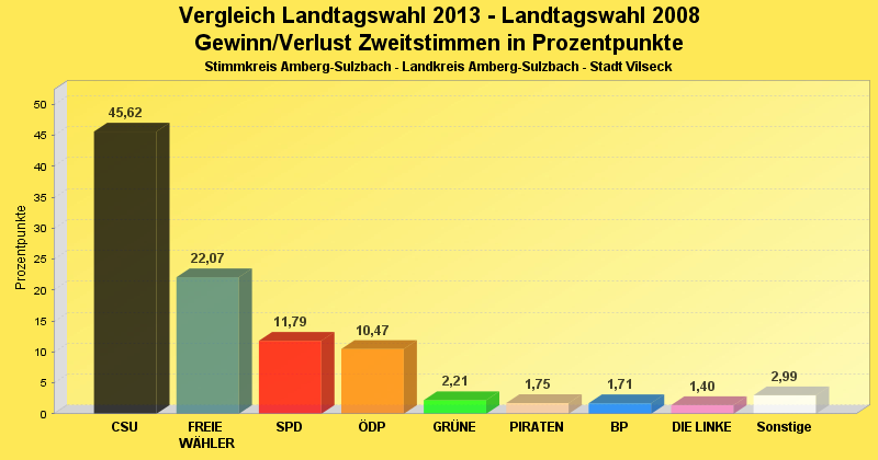 | Partei | Zweitstimmen 2013 | Prozent 2013 | Zweitstimmen 2008 | Prozent 2008 | |