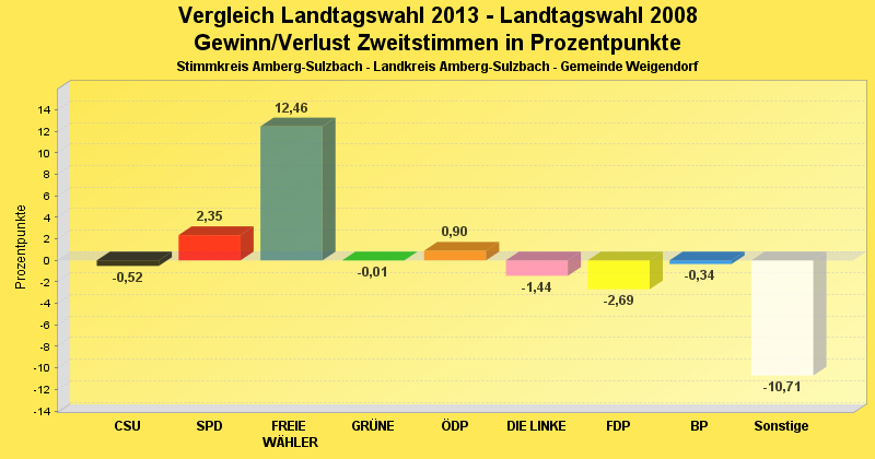 | Partei | Zweitstimmen 2013 | Prozent 2013 | Zweitstimmen 2008 | Prozent 2008 | |