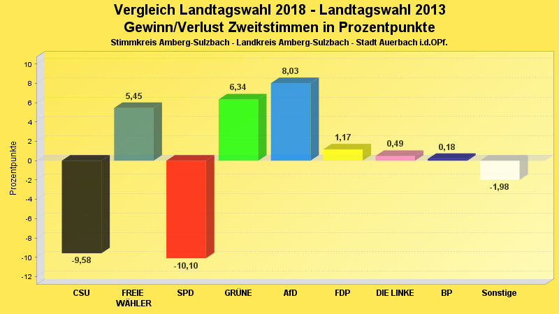 | Partei | Zweitstimmen 2018 | Prozent 2018 | Zweitstimmen 2013 | Prozent 2013 | |