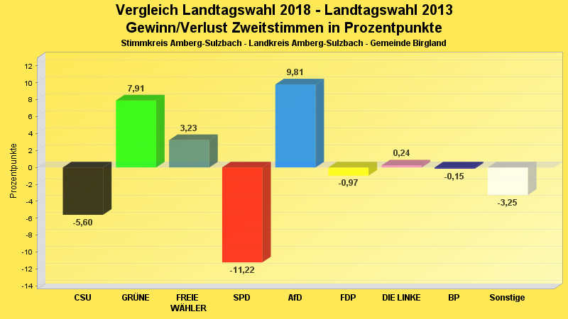 | Partei | Zweitstimmen 2018 | Prozent 2018 | Zweitstimmen 2013 | Prozent 2013 | |