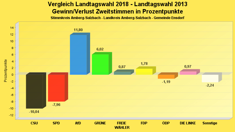 | Partei | Zweitstimmen 2018 | Prozent 2018 | Zweitstimmen 2013 | Prozent 2013 | |