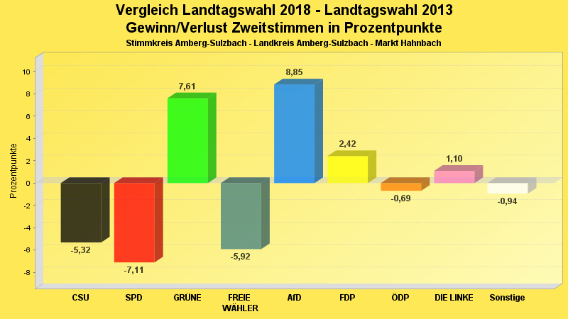 | Partei | Zweitstimmen 2018 | Prozent 2018 | Zweitstimmen 2013 | Prozent 2013 | |