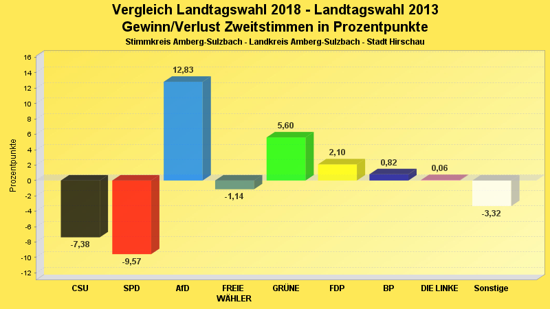 | Partei | Zweitstimmen 2018 | Prozent 2018 | Zweitstimmen 2013 | Prozent 2013 | |