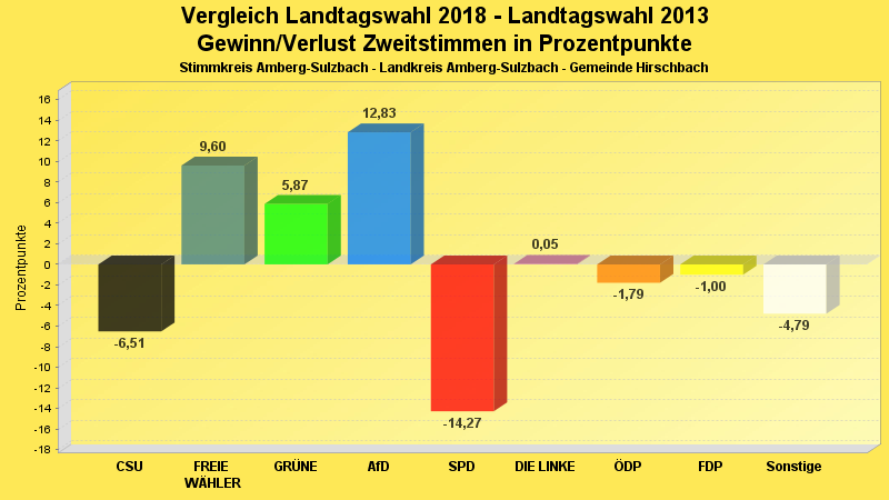 | Partei | Zweitstimmen 2018 | Prozent 2018 | Zweitstimmen 2013 | Prozent 2013 | |