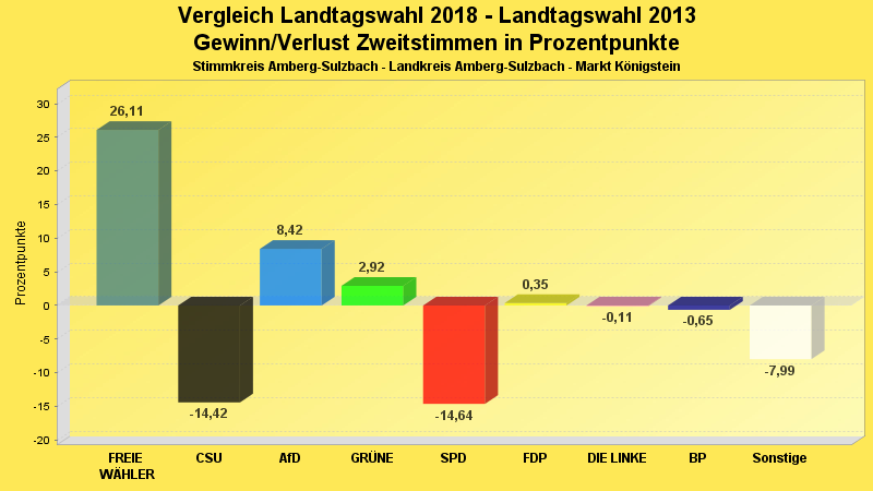 | Partei | Zweitstimmen 2018 | Prozent 2018 | Zweitstimmen 2013 | Prozent 2013 | |