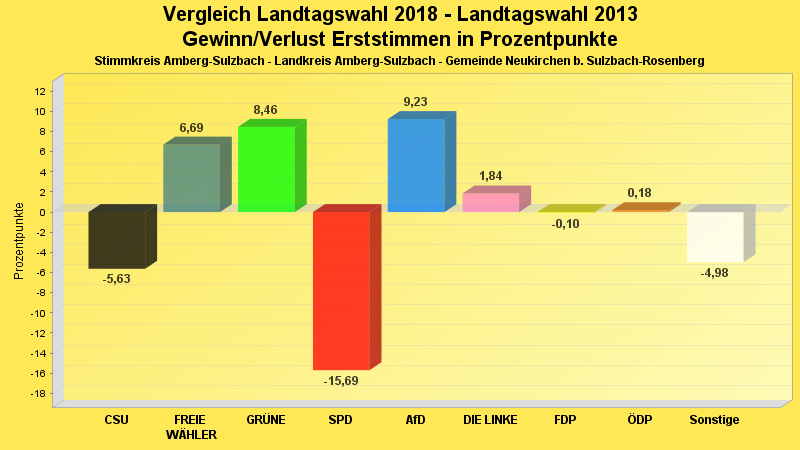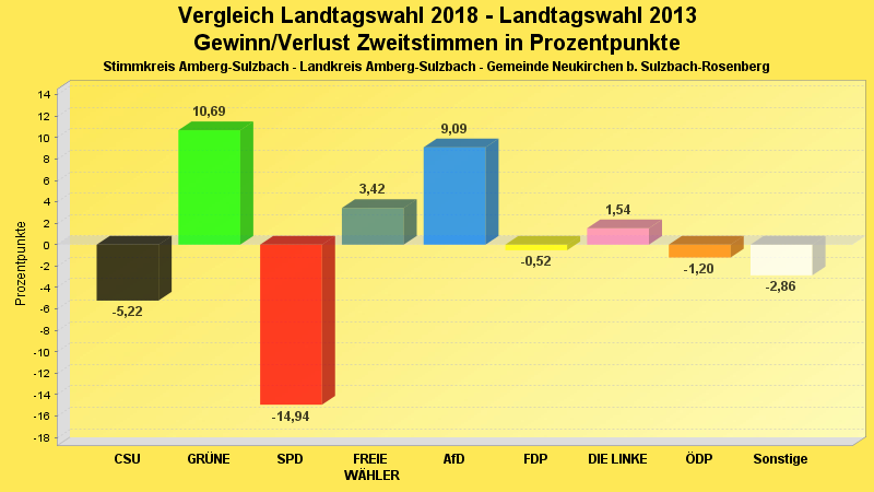 | Partei | Zweitstimmen 2018 | Prozent 2018 | Zweitstimmen 2013 | Prozent 2013 | |