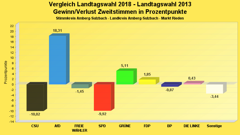 | Partei | Zweitstimmen 2018 | Prozent 2018 | Zweitstimmen 2013 | Prozent 2013 | |