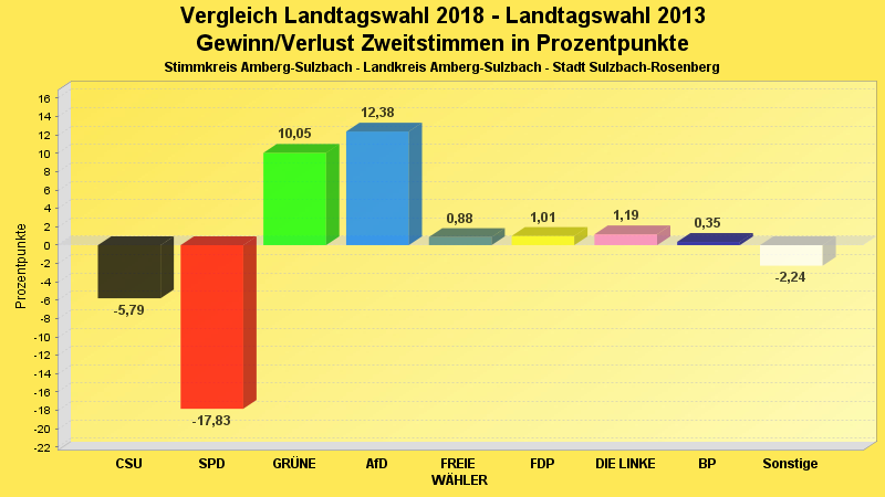 | Partei | Zweitstimmen 2018 | Prozent 2018 | Zweitstimmen 2013 | Prozent 2013 | |
