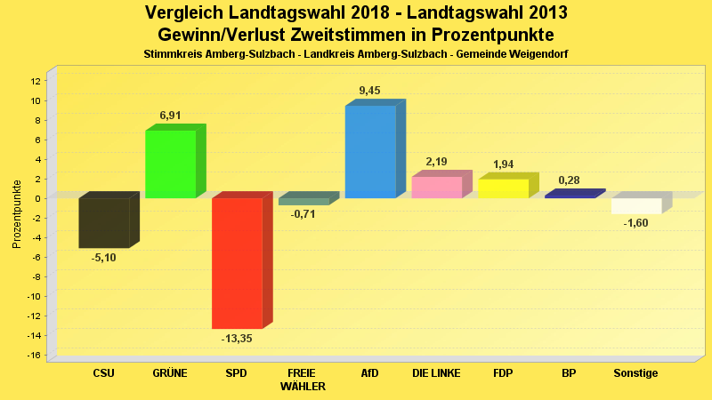 | Partei | Zweitstimmen 2018 | Prozent 2018 | Zweitstimmen 2013 | Prozent 2013 | |
